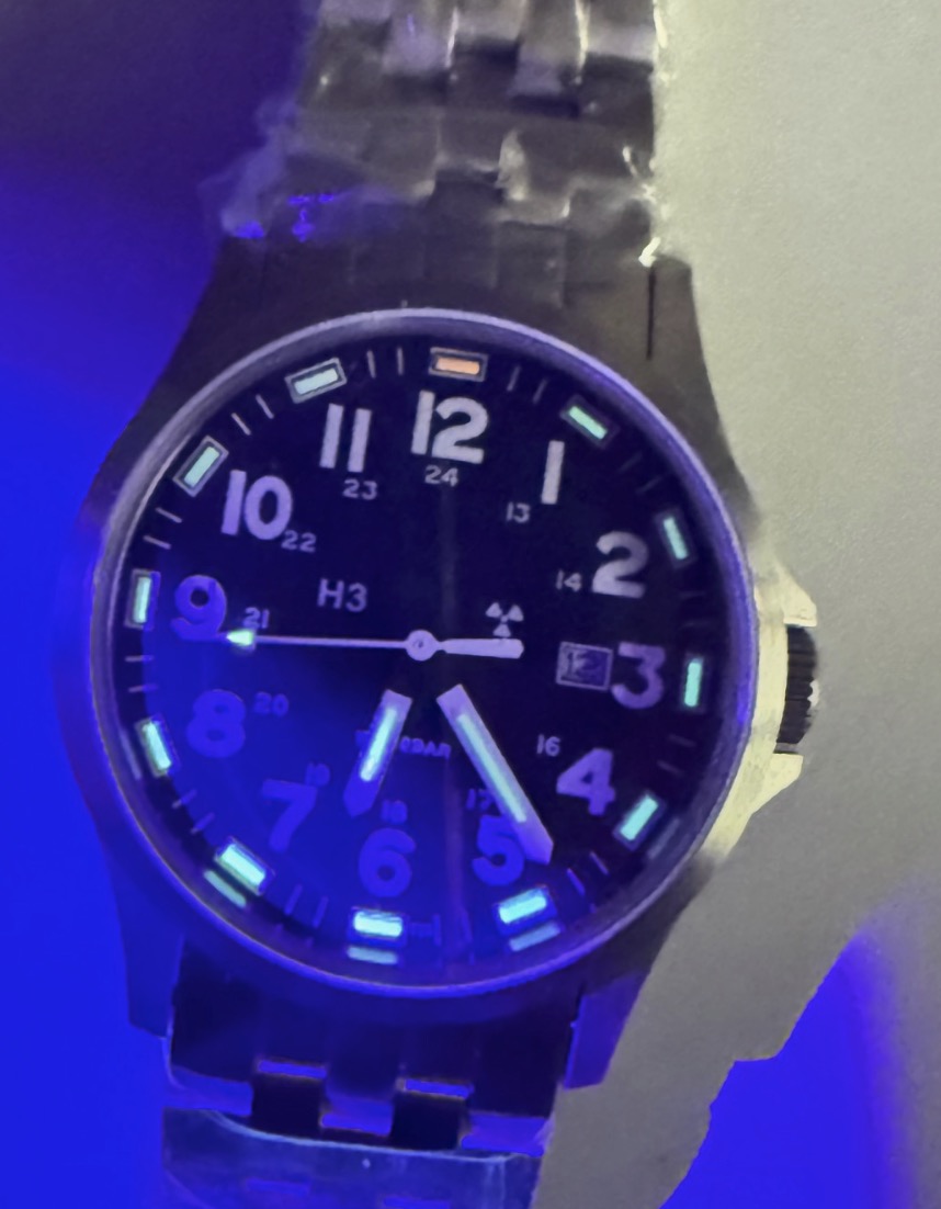A tritium watch with 14 self illuminating gas tubes. T25 standard.