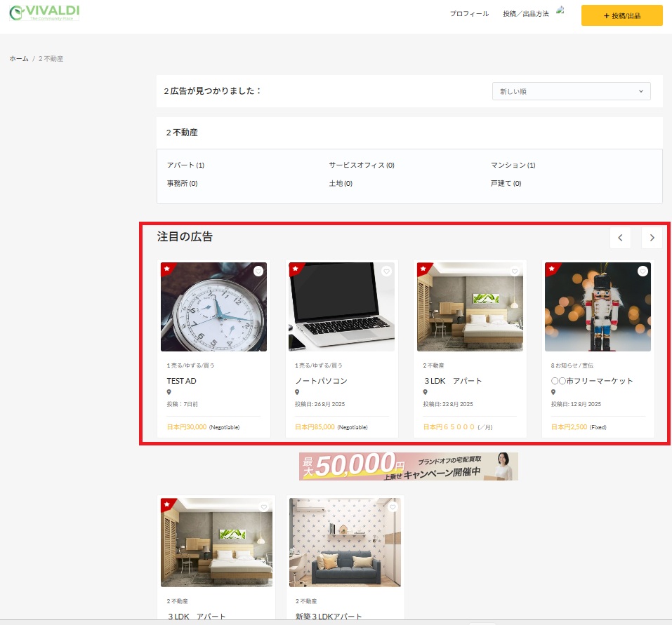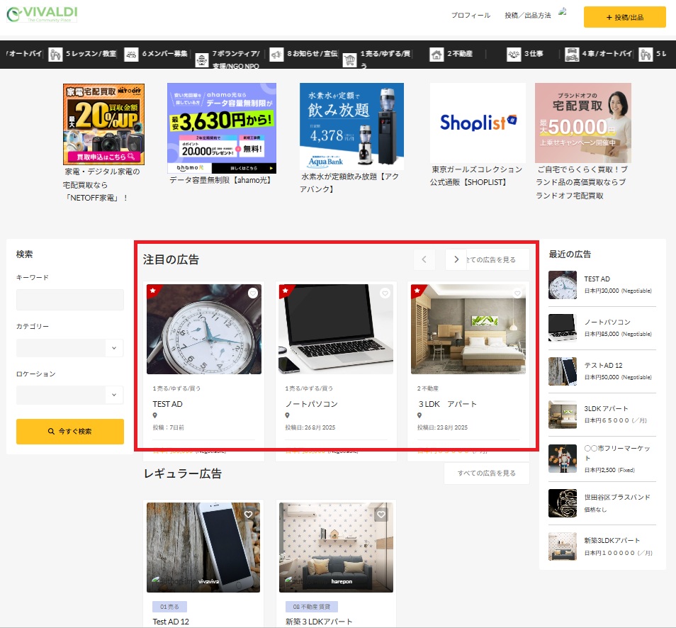 優先表示にすると、投稿した広告や記事に星マークが付き、トップページ及びすべてのカテゴリーページの上部に優先的に表示されます。より露出が上がり、閲覧者の目に留まりやすくなります。